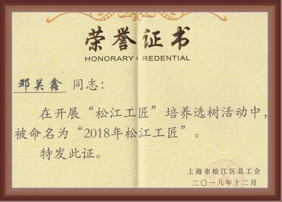【熱烈祝賀】鄧關(guān)鑫榮獲首屆“松江工匠”榮譽(yù)稱(chēng)號(hào)