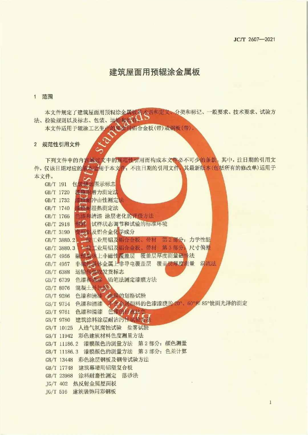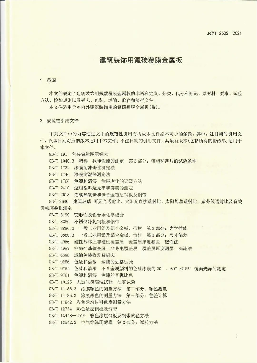 近日,由中國(guó)建筑材料聯(lián)合會(huì)提出,雅泰實(shí)業(yè)集團(tuán)參與起草的《JC/T2605-2021建筑裝飾用氟碳覆膜金屬板》、《JC/T2607-2021建筑屋面用預(yù)輥涂金屬板》兩項(xiàng)行業(yè)標(biāo)準(zhǔn)于2021年3月5日發(fā)布,同年7月1日正式實(shí)施,公司技術(shù)部經(jīng)理林葉挺為此次兩項(xiàng)行業(yè)標(biāo)準(zhǔn)的主要起草人之一。
